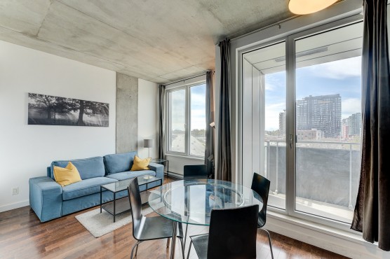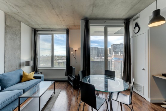 Superbe condo 1 chambre au 6e étage avec blacon. Orientation Sud-Ouest avec soleil toute la journée! Accès très rapide à l’autoroute 10-15-20 et 720! Immeuble comprend plusieurs espace commun : SkyTerrasse avec piscine, spa, barbecue et salle d’entraînement ainsi qu’un SkyLounge muni d’un spacieux salon vitré, foyer, écran géant et cuisine équipée.