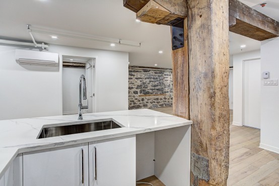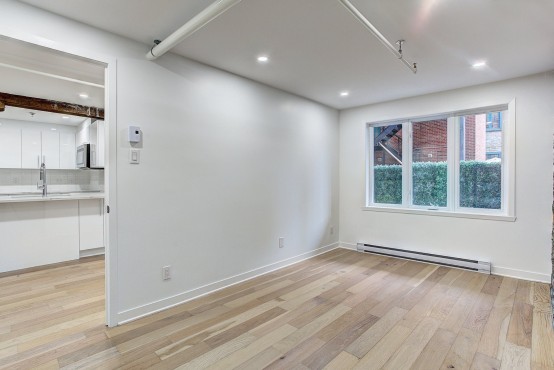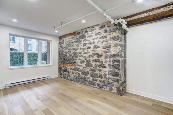 Superbe espace sur cours intérieure. Condo une chambre, complètement rénové. Finitions de qualité supérieures. Un mélange unique entre le charme du Vieux Montreal une touche contemporaine! Ideal pour professionnel qui travail dans le secteur du multimédia ou étudiant international. Aussi muni d’une terrasse privée.
