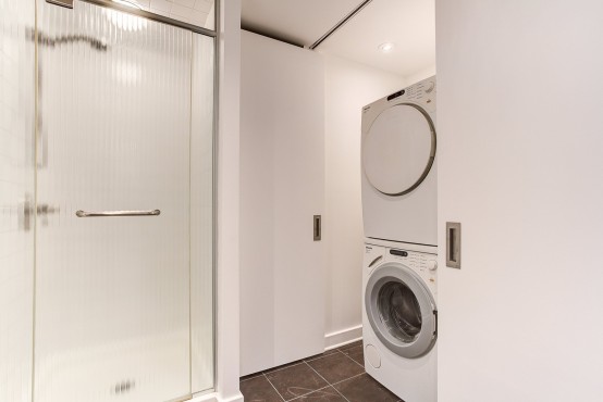 - Inclus : Réfrigérateur, cuisinière, lave-vaisselle, laveuse et sécheuse, 1 garage intérieur, 1 grand casier, gymnase et sauna