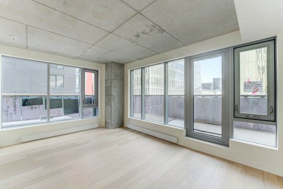 Superbe condo NEUF d’une chambre en coin dans le tout nouveau projet IMPÉRIA en plein coeur du centre-ville. Condo très lumineux avec fenêtres du plancher au planfond avec une terrasse de 230pc. L’immeuble comprends une salle de sport, espace yoga, spa, terrasse au toit avec BBQ. A proximité de tous les services et à 100m du métro Place des Arts.