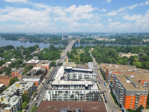 stratégiquement située face au parc riverain Parcours Gouin