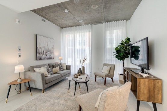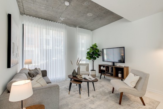Phase finale du projet acclamé Henri B. Stratégiquement située face au parc riverain Parcours Gouin et à quelques pas du métro. Insonorisation supérieure et structure en béton. Accès intérieur aux commodités du projet : stationnement intérieur, rangement, salle d’entraînement ainsi qu’un chalet urbain et une terrasse sur le toit. Nouvelle construc